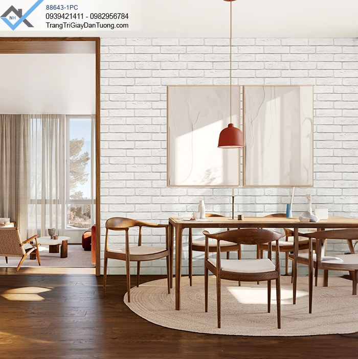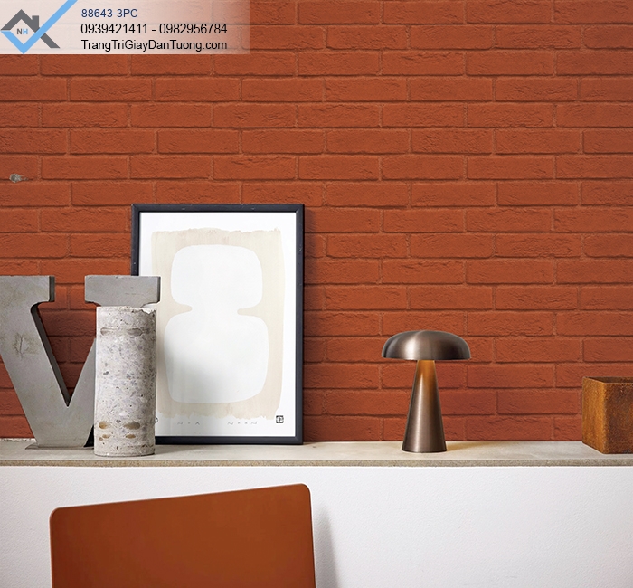 Giấy dán tường giả gạch màu đỏ đô mã 88643-3